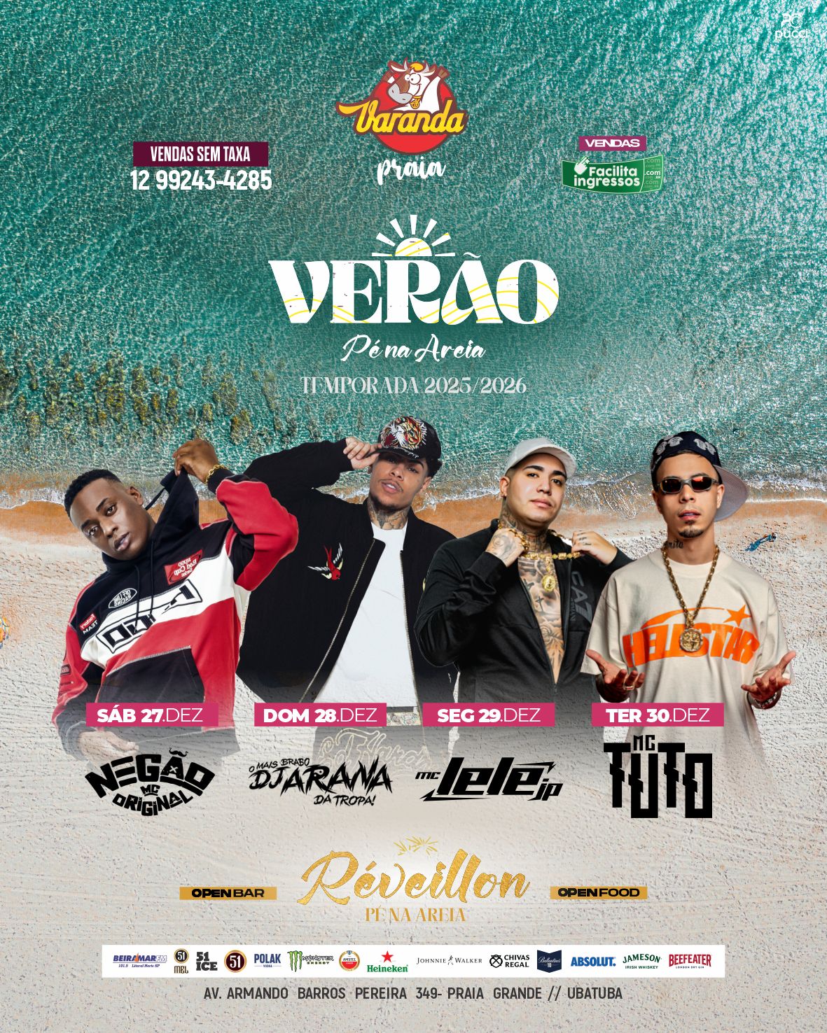 Varanda Praia: Passaporte - Mc Negão Original + DJ Arana +MC Lelê JP + Mc Tuto (4 Shows - 4 Dias)
